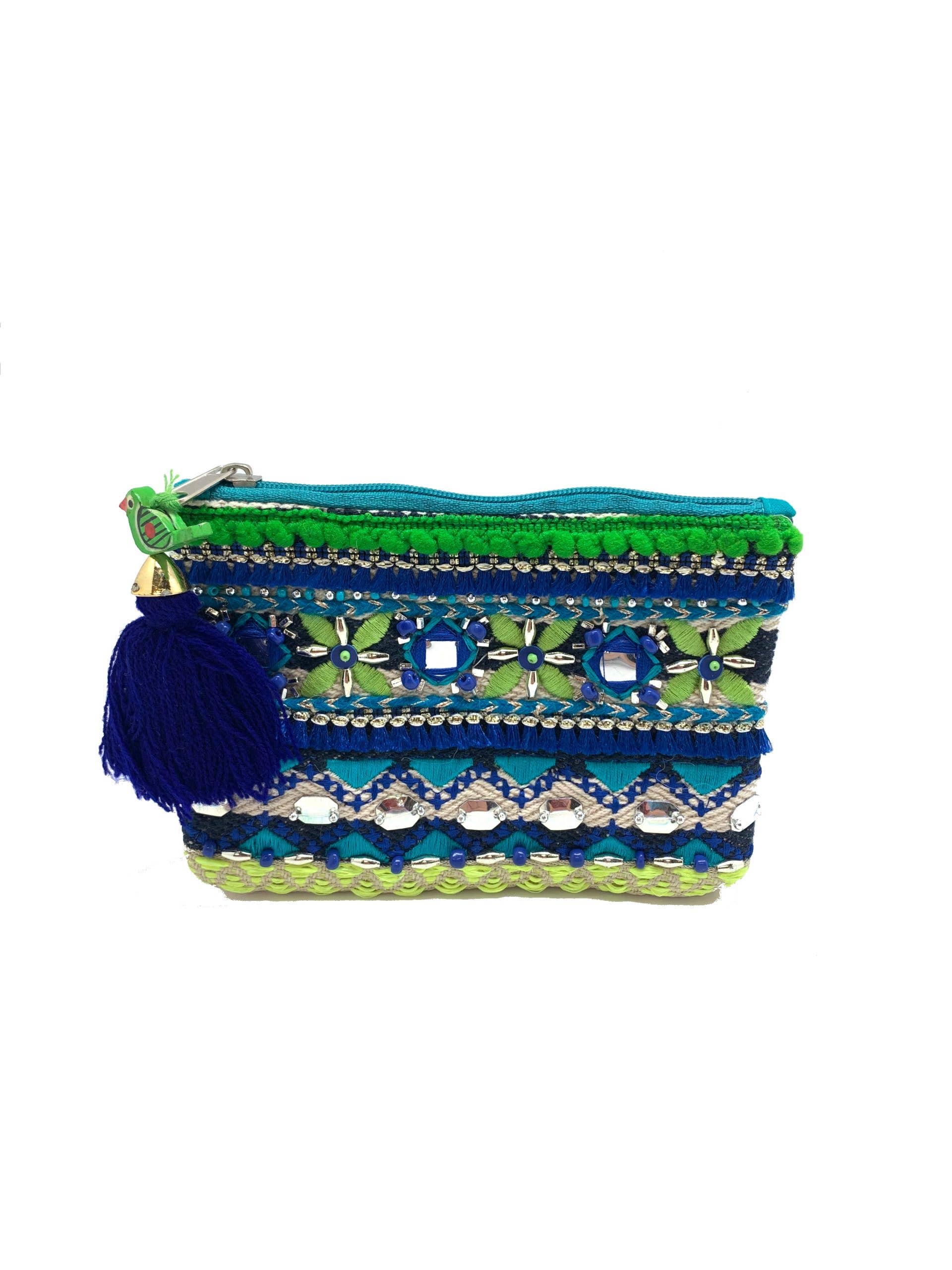 Multi Colored Embroidered Hearts Pouch