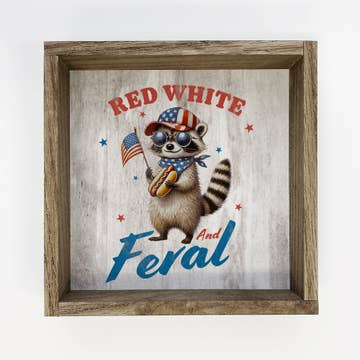 Wholesale Red White and Feral Raccoon - 4th of July Canvas Art