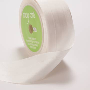 This 1.25 inch by 32 yards ribbon is 100% silk. May Arts’ silk ribbon is a handcrafted distinctive work of art. Each product is dyed using old-world, labor-intensive methods and crafted with the finest silk thread. Thanks to an old-world weaving technique, each ribbon has the look of subtle veining and cross-woven threads while actually being smooth and soft. This bulk spool is 32 yards to a roll. Due to being hand-dyed colors can vary between batches. Slight variations in the weave are considered characteristic of this China silk and not considered to be flaws as they enhance the character of the ribbon.