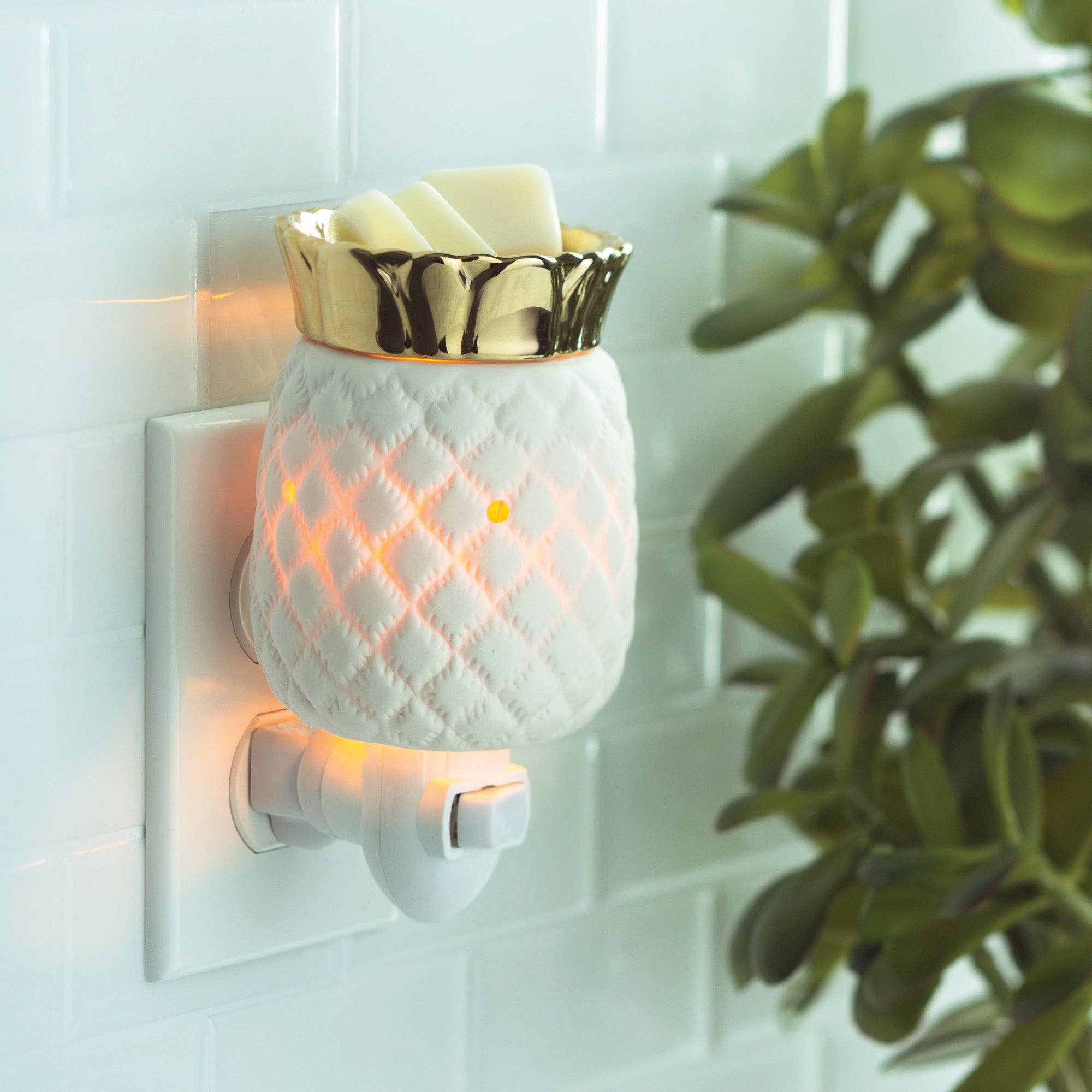 FROSTY PLUGGABLE WARMER The Frosty Pluggable Warmer brings a whimsical festive flair to your space. Fragrance Warmers can be used in vertical outlets, making them ideal above counter outlets in small rooms and spaces. * The soft glow of the halogen bulb creates the ambiance and fragrance of a lit candle, without flame, soot, or other pollutants. * Elegant home décor is the focus of every Candle Warmers Etc. product, and each is made to complement your personal taste. Simply add wax melts to the dish, turn it on, and enjoy your favourite fragrance as it spreads through the room.