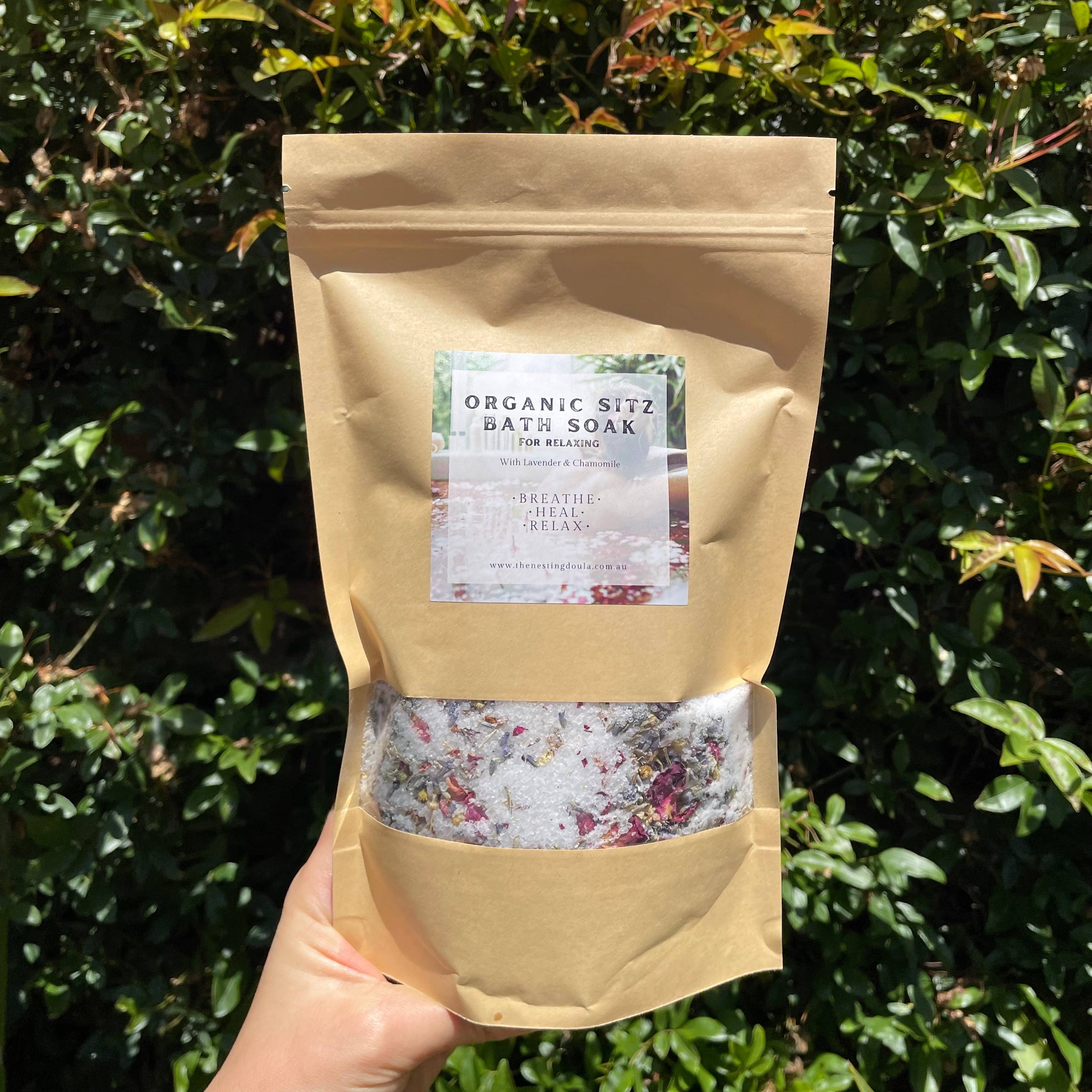 Organic Herbs & Milk Bath Soak - For Post Birth Healing *BENEFITS* Antibacterial, Helps To Heal Post Birth Tears & Wounds For A Faster Recovery Anti-inflammatory, Helps With Post Birth Swelling Minimises Scars & Stretch Marks Deeply Relaxing, Rejuvenating & Helps With Calming Babies, Children & Adults (I use my soaks for my children & myself when we are overwhelmed or emotional) Hydrates & Soothes Skin Irritations Such As Stretching Skin In Pregnancy Muscle Soothing Detoxifying Encourages Quality Sleep Safe During Pregnancy & Postpartum Soak for a minimum of 30 mins & start healing your mind, body & spirit. Note: It takes your body minimum 20mins to detox & from then your body will start to heal itself. Ideally soaking for 40+mins is most beneficial. *ORGANIC INGREDIENTS* Goats Milk Sage Leaves Calendula, Lavender & Chamomile Flowers Rose Petals Pink Himalayan Rock Salt 100% Magnesium Rich Natural Pure Epson Salt Made In Australia Sml 290g Lrg 710g
