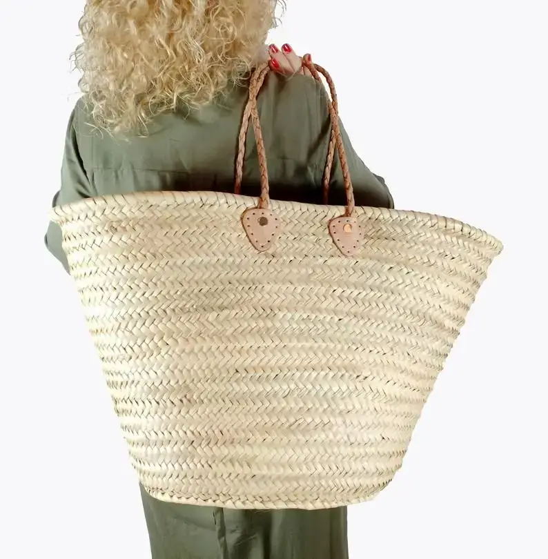 Woven straw bag personalized with initial is a straw bag with leather handles perfect as a gift for women. This moroccan basket handcrafted with natural straw and combined with leather, making it a lovely straw purse bagas a gift for women. Very versatile, this natural basket is perfect anytime and everywhere, you can use it as beach bag, for shopping, for the pool, for go to the grocery, etc. Finally, you can use your straw bag for everyday use, always with style and authenticity. Size: H35cm x W50cm x D30cm All sizes are approximate