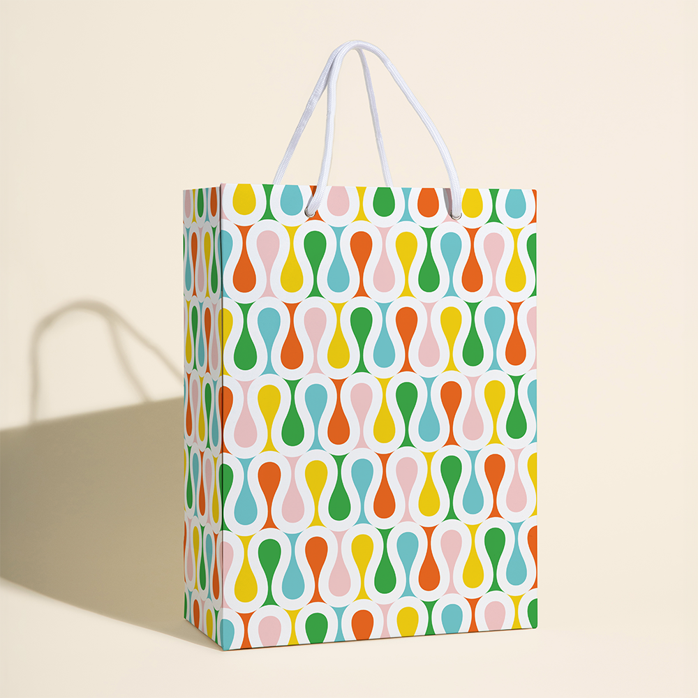Make every birthday extra festive with the Confetti Cake gift bag. Featuring a layered cake topped with candles and surrounded by colorful sprinkles and flowers, this bold and playful bag is perfect for birthdays, parties, and big celebrations. Sturdy, vibrant, and large enough for a variety of gifts. • Generous size: 13" H × 9.6" W × 4.5" D • Made from sturdy, responsibly sourced 200 GSM board stock • Finished with a smooth, scuff-resistant matte lamination • Gusseted sides expand to fit larger gifts with ease • Flat reinforced bottom keeps gifts standing tall • Strong metal eyelets for extra durability • Premium white braided rope handles for a polished look