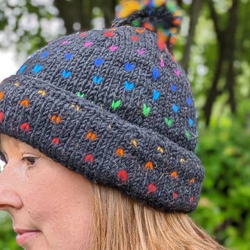 NEW Fisherman's Rib Knit Beanie Hat cosy winter warmer. Hand knitted, fleece lined with pom pom detail, chunky 100% wool yarn. Two tone colour, Red/Black, these are perfect unisex beanie hats, with matching scarves. Dimension: 25cm wide x 21cm height (plus pom pom) Material: 100% Wool Matching Scarves Available