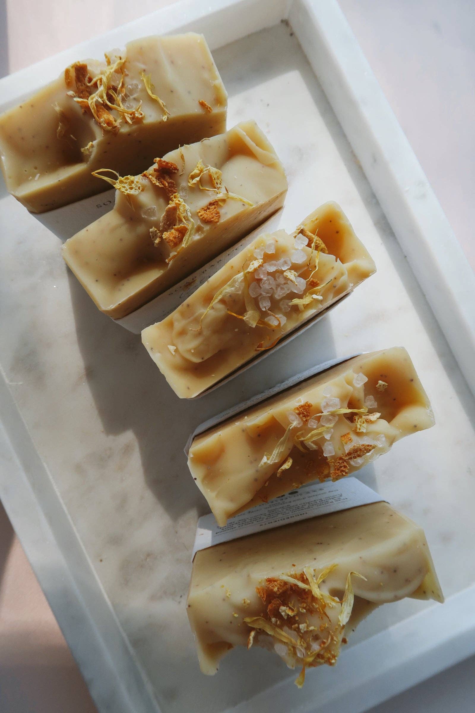 SLEEP SOAP A creamy soft blue soap bar with a medium exfoliation from walnut shells. Just like a sleep time tea, a daily ritual to allow yourself to relax and unwind from an aromatic blend of lavender, bergamot, sage & geranium, coloured naturally with activated charcoal & kaolin clay INGREDIENTS Coconut oil, shea butter, refined olive oil, sweet almond oil, distilled water, sodium hydroxide, essential oils of lavender, bergamot, clary sage & geranium, activated charcoal, kaolin clay Garnished with lavender buds, pink peppercorns and walnut shells Luxury plantable labels made from 100% recycled paper embedded with swan river daisies PLANT OUR LABELS TO GROW Our soap labels are made from 100% recycled paper embedded with seeds NO NASTIES Palm oil, sulfate, paraben, detergent, preservative & phthalate free