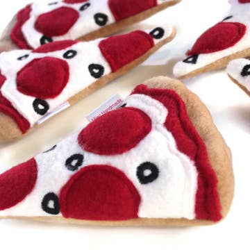 HANDMADE VEGAN EMBROIDERED ORGANIC CATNIP Our process makes each one unique and they even have bloody bits hanging out of their mouths. Measures:5” x 4” x 1” Sewn of: fleece, felt, organic catnip, fiber fill Packaged in: clear sleeve with descriptive topper