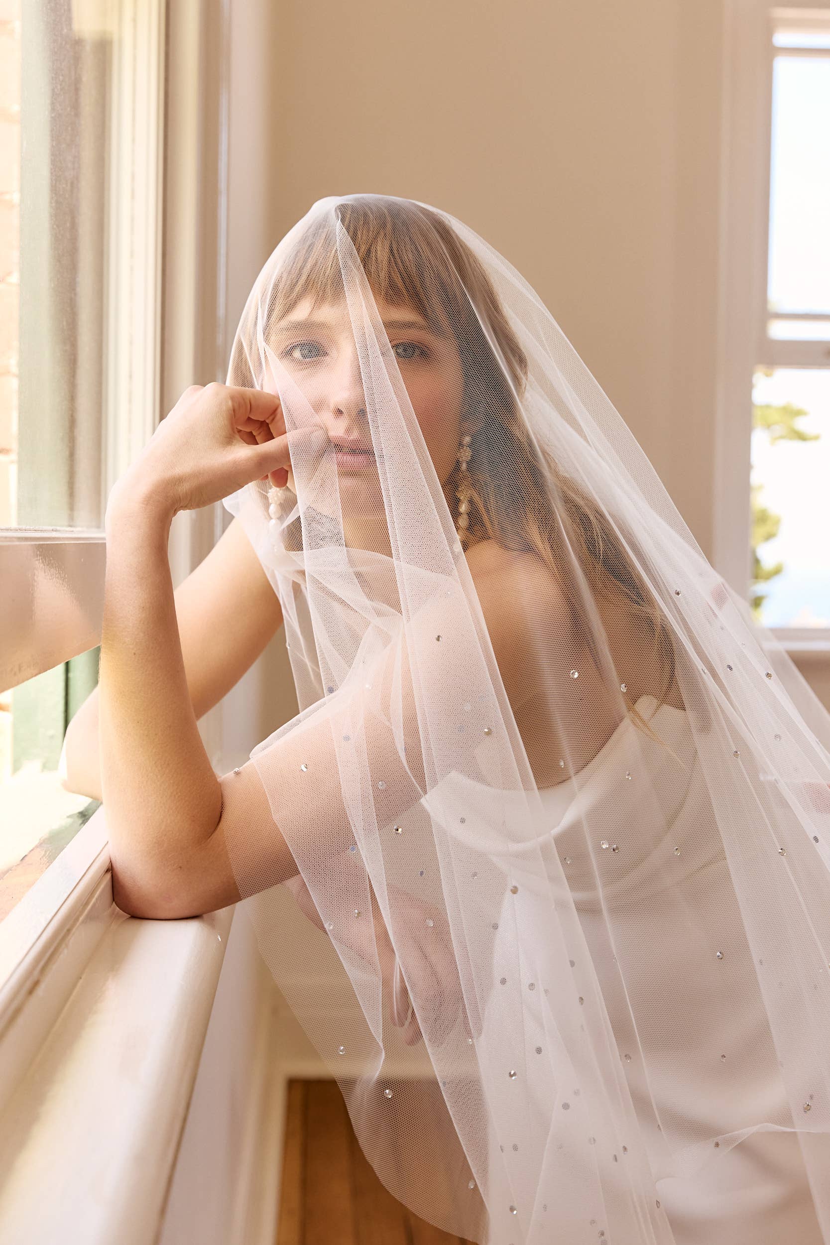 Gorgeous Phoebe will add some Old School elegance to your wedding day style. With two tulle-wrapped combs either side it can be placed however you like it allowing you to work around your hair style. Available with delicate glass pearls (pictured) or a scattering of flowers (not over the eyes. Because, annoying) at the sides or plain. This veil is hand-made in our studio. Veils are made-to-order and returns are not accepted due to their delicate nature. Any questions prior to purchase please do not hesitate to contact us. Detail - Hand-made in Australia - French netting - Tulle-wrapped metal combs - Comes boxed for storage