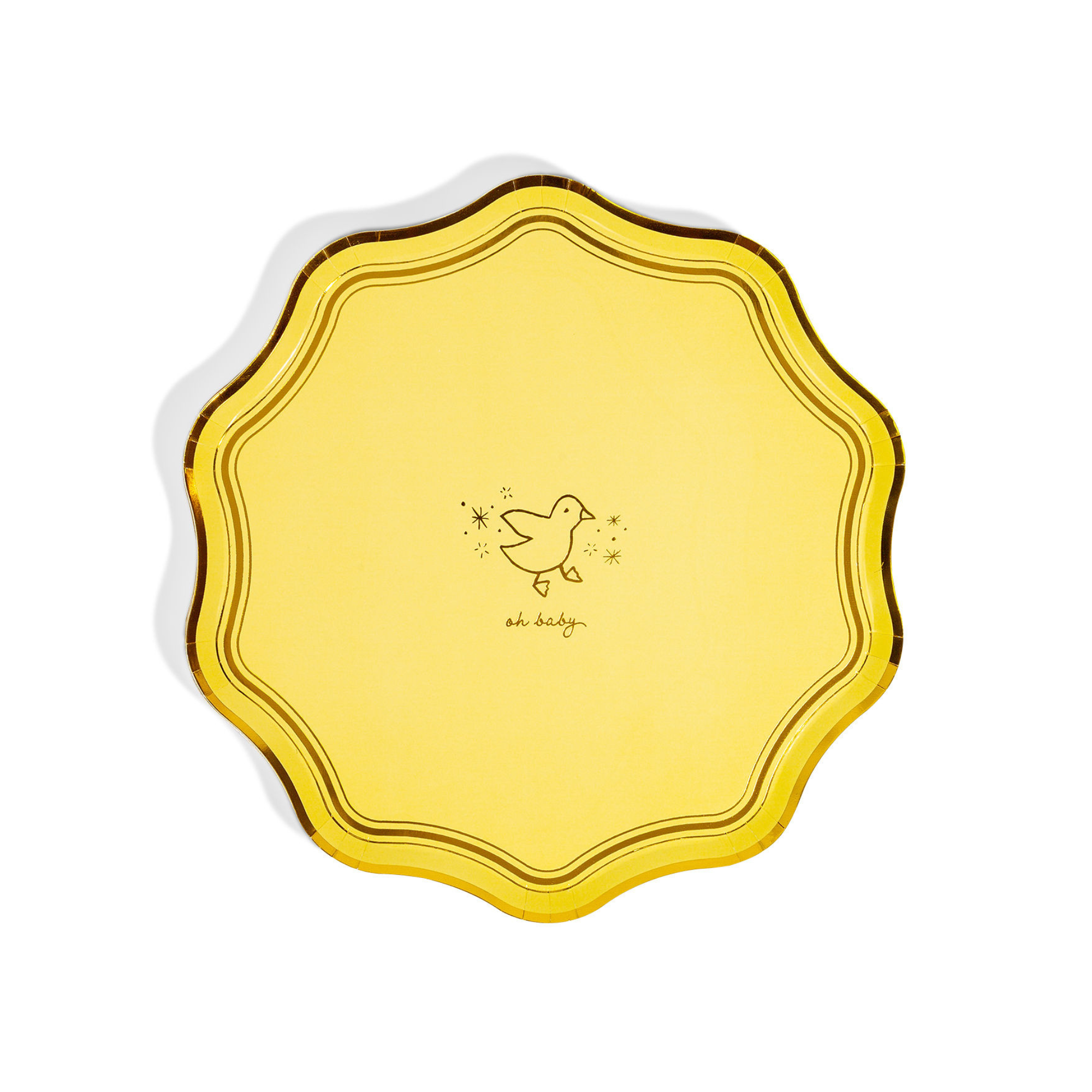 Brighten your baby shower with these Oh Baby Yellow cocktail napkins. Yellow and white stripes with gold foil “Oh Baby” and a sweet icon add a sunny, playful vibe. 5 x 5 in., pack of 20. Coordinate with Oh Baby Yellow plates for a joyful celebration!
