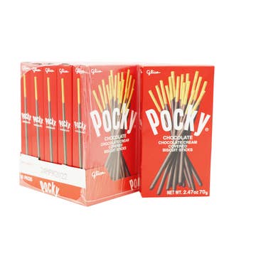 Pocky is a made of a biscuit stick and then they are dipped in a few different flavors to choose from. A very popular Japanese sweet treat is now enjoyed in many different countries. The biscuit sticks fill the box so there is plenty to share with your friends. The Chocolate dipped Pocky Sticks were the original flavor and then came the chocolate dipped with almonds. What is wonderful about the Pocky is they dip the biscuit only about 3/4 of the way so that the bottom is free of chocolate, so your fingers don't get messy. Pocky is featured in many shows and anime. Be on the lookout for all the amazing flavors Pocky has to offer. *There is an additional fee for thermal and ice when buying meltable products.
