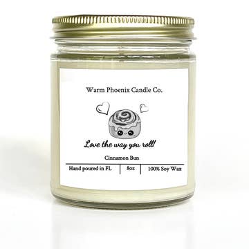 Our Cinnamon Buns candle brings a fresh, warm and buttery scent of cinnamon and smells just like a fresh bake cinnamon bun. ⚫️ NOTES: o Top: Cinnamon, Clove o Middle: Butter, Sugar o Bottom: Vanilla, Cream ⚫️ INFO: Dimensions: 3.6”h x 2.8”d - Net weight: 8oz ~40 hours of burn time ⚫️ Material: 100% Soy Wax, Cotton Wicks, Clear Jar ⚫️ PERFECT gifts for any occasion - birthdays, anniversaries, weddings, bridal gifts, housewarming gifts, etc. 🔴Lid style/color can be different due to supply shortages. -------------------------------------------------------------------------------------------- Our candles are hand poured and handcrafted in small batches with 100% soy wax for an eco-friendly clean burn. We use lead-free cotton wicks and premium fragrance oils infused with essential oils. Our candles are vegan, cruelty-free, phthalate-free, and petroleum-free. Any questions or concerns please message me. Connect with us on Instagram! @warmphoenixcandleco