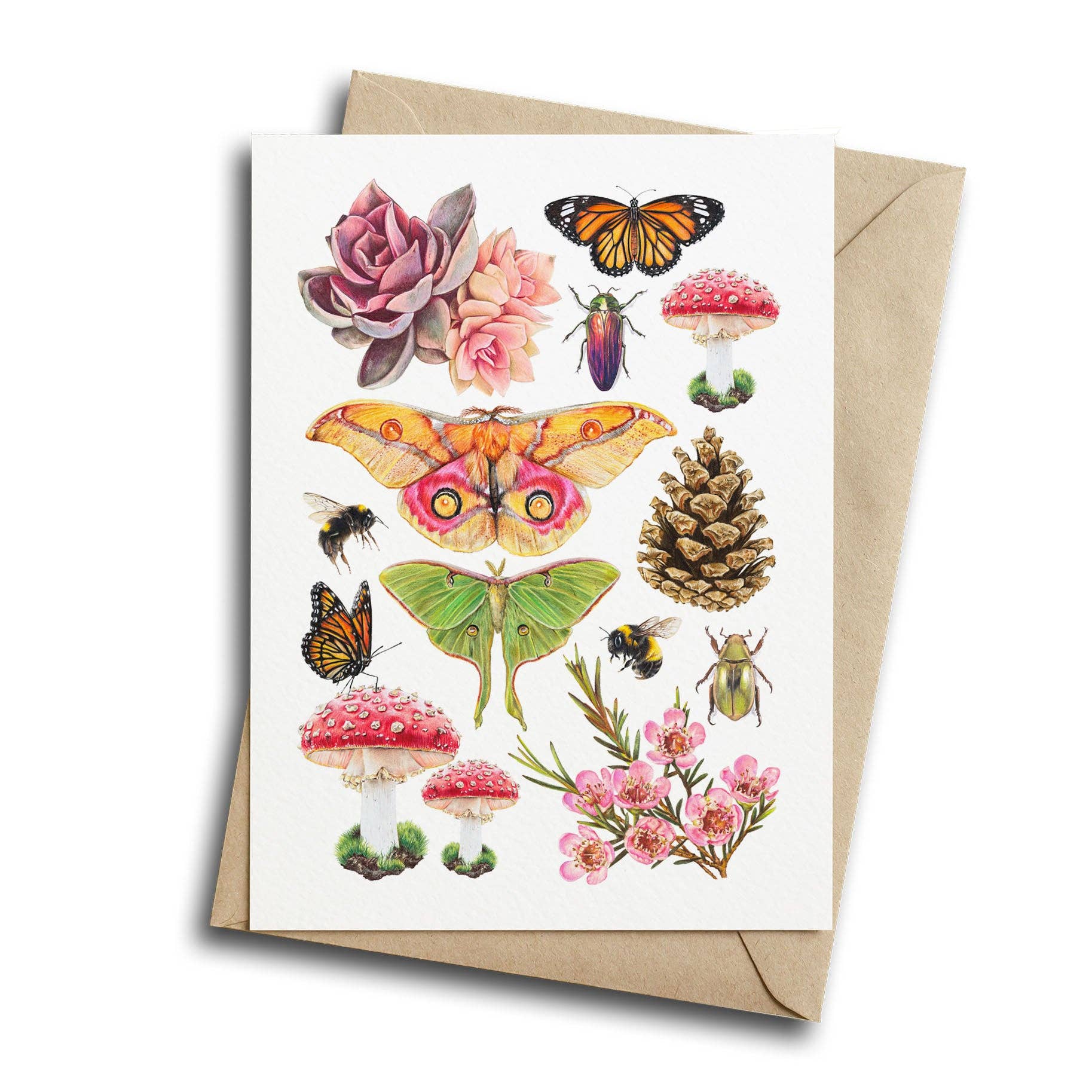 All my cards are from my own quirky and original illustrations and are blank inside, so they work equally well as greetings cards or notecards. They are square (15 x 15cm) cards printed on high quality matt, 350gsm card stock. They come with a kraft envelope and are sealed with a card clasp.
