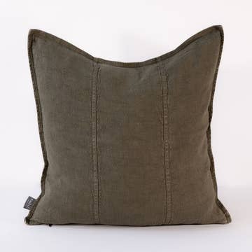 Cushion cover only Material: 20% linen, 80% rayon Size: 45 x 45 & 53 x 53cm Wash Instructions: Machine wash Colour: Sand Ruffled edge 1/3 opening at the back