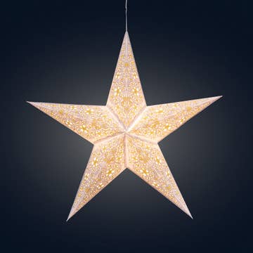 Such a great product. I love the paper cut stars. The LED lights are great and they are so easy to set up. Just unfold, hang, plug in.