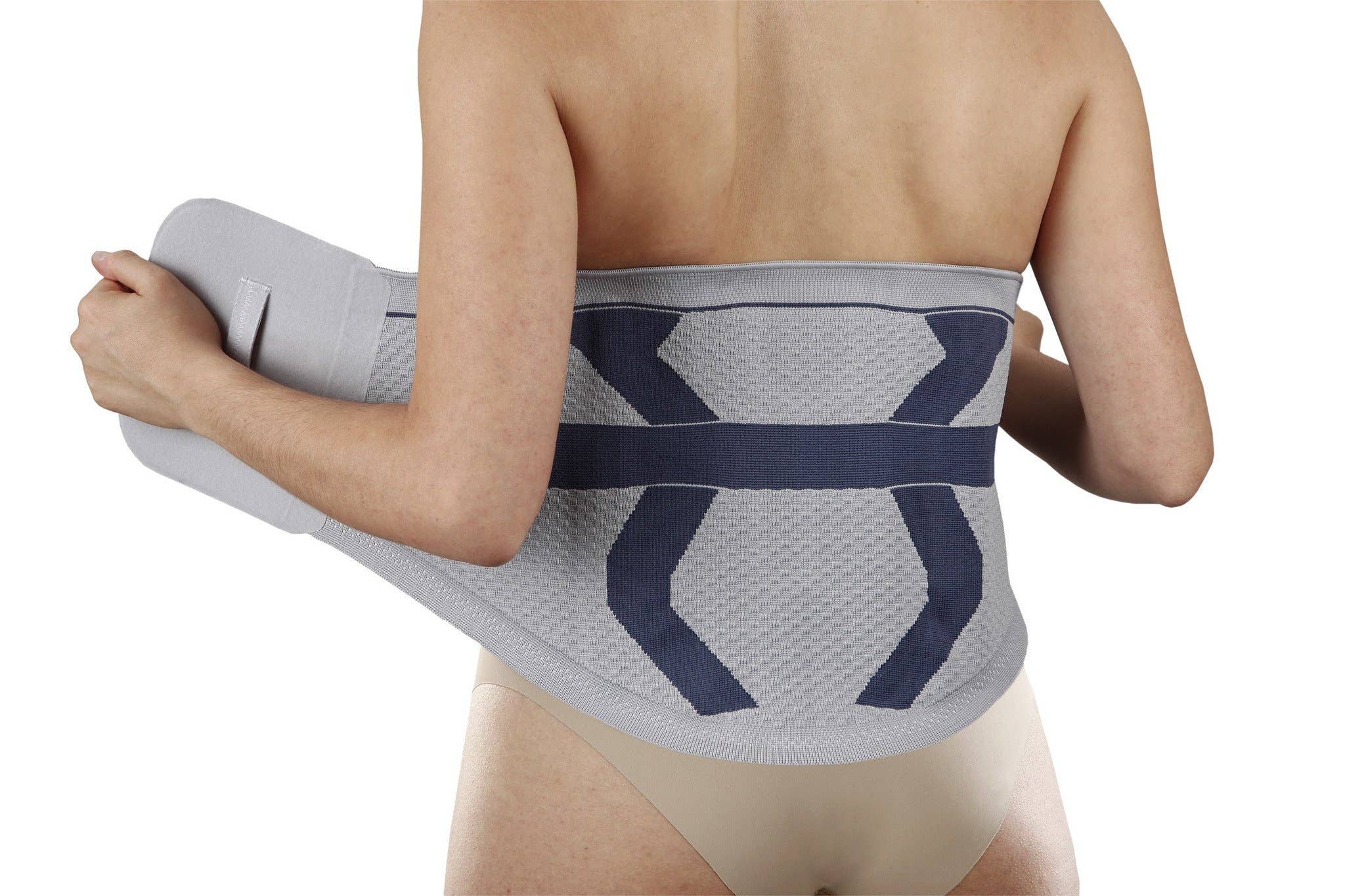 They are used to effectively contain reducible inguinal hernias and consist of a pelvic belt, an anatomical skin pad (s) and an inguinal loop or strap that extends from the pad, through the bottom of the buttocks, to the side of the waist where it is fixed. ORIONE brand inguinal hernia trusses represent the widest and most complete range of products for the containment of reducible inguinal hernias. They adhere perfectly to the body and are very comfortable allowing freedom of movement. They have a quality finish and are made with the best materials. Our products are handcrafted in our factory in Italy in compliance with European standards ISO 9001. To calculate the size, measure the waist just below the navel with a tape measure. UNILATERAL Inguinal Hernia Truss with Anatomical Pad Art.351 ORIONE®