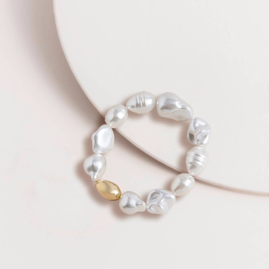 3-piece pearl and metal jumble bracelet Quality plated metal and glass bracelet Stretch bracelets fit most Pearl fashion bracelet by Super Amazing Product Care: Wipe clean with a damp cloth. Do not immerse in water, spray with cleaners, perfumes or use hand creams. Keep dry and store away from light.
