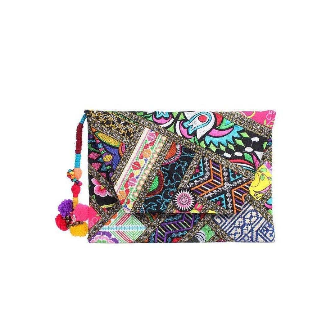Add a joyful pop of color to your day with this handmade pom pom keychain. Crafted by women artisans in Northern Thailand, each piece features layers of multicolored pompoms, delicate beads, and tiny brass bells that offer a soft jingle as you move. No two are exactly alike, making this zipper pull a small but meaningful expression of tradition and creativity. Use it on your keys, your tote, or your backpack — wherever you want to carry a bit of color and purpose. Product details: • Approximately 2" wide x 9.8" tall • Handmade from multicolor pompoms, beads, and brass accents • Crafted by women artisans in Thailand • Made following Fair Trade guidelines This piece brings playful energy and artisan care to any everyday accessory.