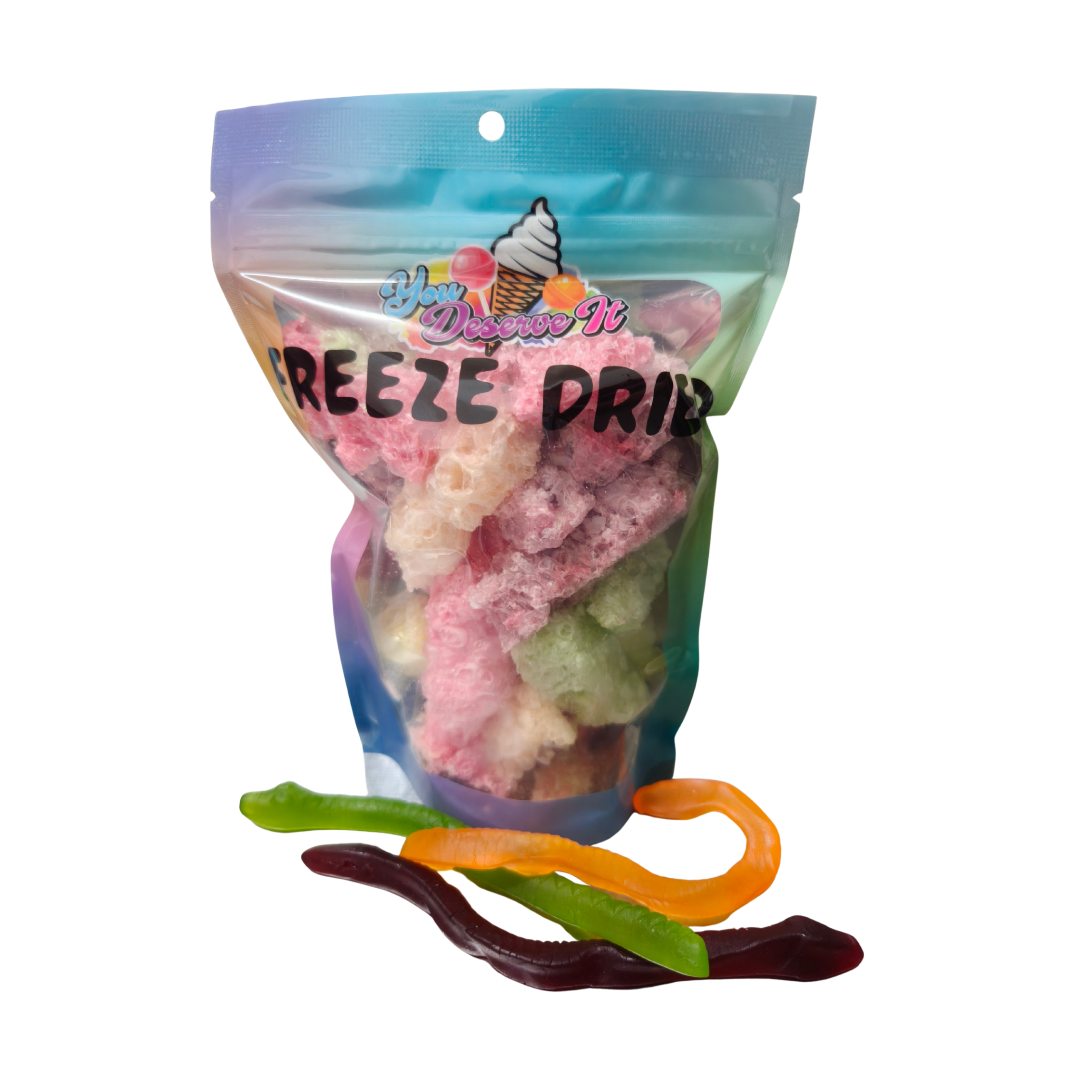 Freeze dried sour bears. Can you see how much they blew up. crazy. same great taste, only crunchy. approx weight 50g May contain traces of gluten and other allergies. All produced in house in small batches. Meaning we have better control on quality and consistency.