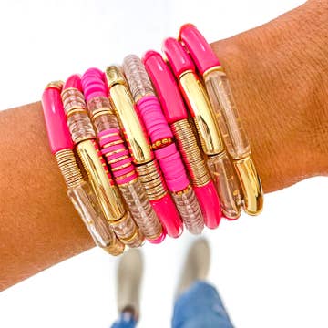 Wholesale Small Hot Pink Acrylic Tube Bamboo Bracelet
