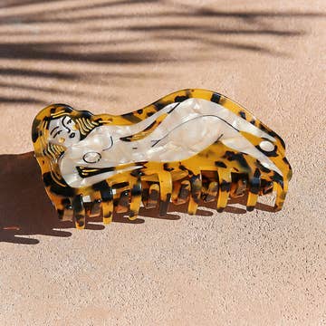 All Hair Claws and Clips are designed by Jemima Kingston in her Australian studio. They are made outside of Australia and mainly comprised of a plant based biodegradable acetate also with a mix of regular acetate, pearls, paint work and metal components.