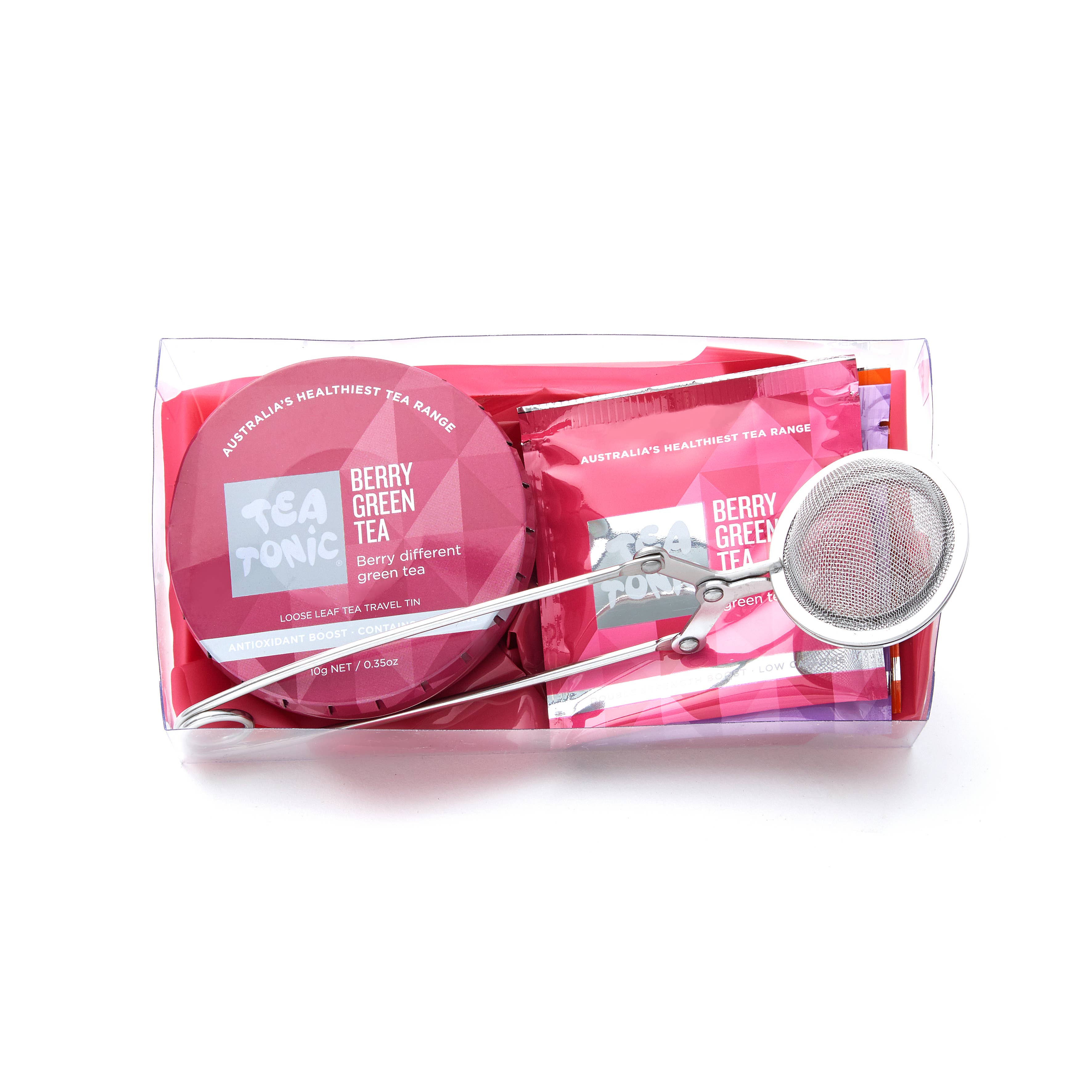 SKU: BGTRT Made in Australia Shelf life: 24–36 months Storage: Shelf-stable Ingredients: Green Tea (Camellia sinensis), Oolong Tea (Camellia sinensis), Black Tea (Camellia sinensis), Strawberry Pieces (Fragaria x ananassa), Raspberry Pieces (Rubus idaeus), Red Currant Pieces (Ribes sylvestris), Natural Flavour. Product language: English
