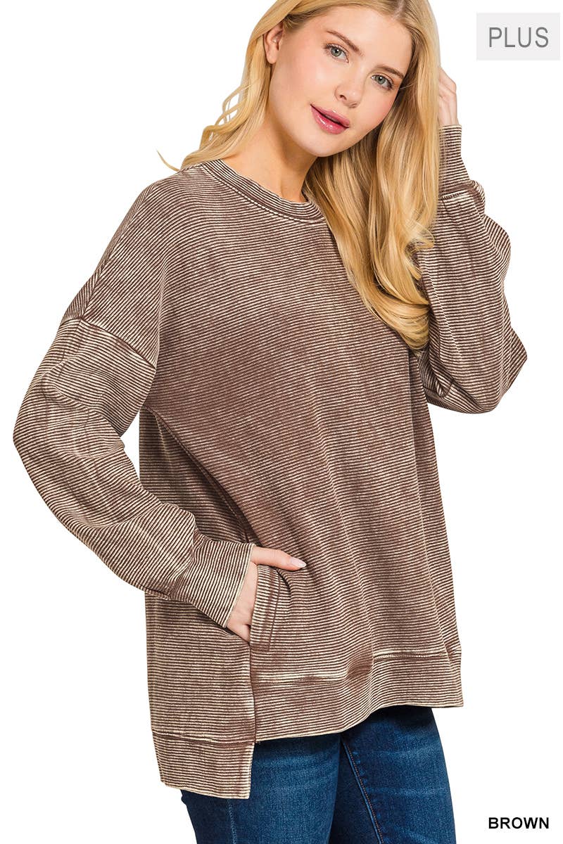`.French Terry Acid Wash Kangaroo Pocket Hoodie