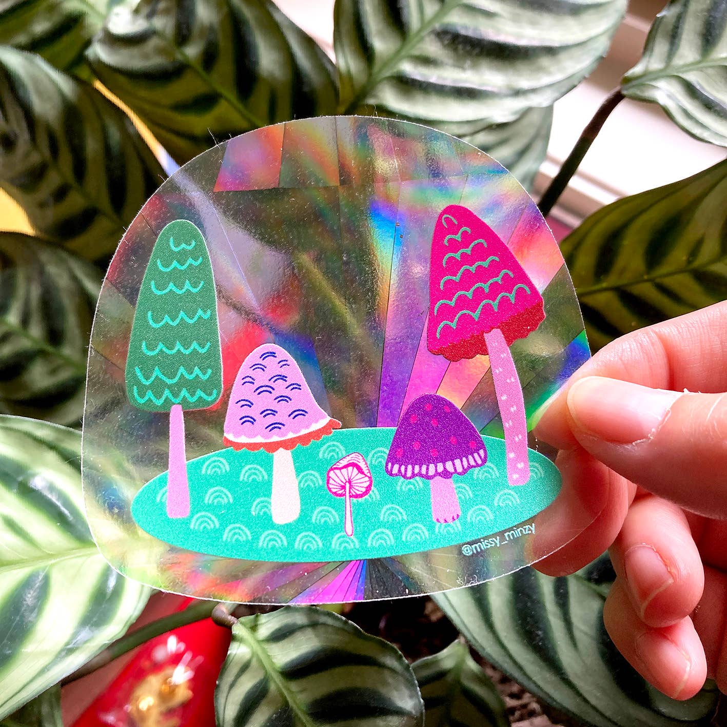 SUNCATCHER Red Mushrooms | Rainbow Sticker Add one of these suncatcher decals to a clean window that gets direct sunlight! Sit back and watch the rainbows fill your home and living space! Get one of these positive vibe rainbow happiness as part of the home decor. One for you or/and share it with your friends. It will makes a great open conversation and a cute little gift too! Details:- • Measurement: 3.5" (W) x approx. 3.7" (H) • Ideas to add one to your window - at home - at work - in your working studio - on the inside of your car Find a great south-facing window, preferably with no tint or screens. Make sure it is a clean surface and let it dry before placing suncatcher decals sticker. The Suncatcher decals can be moved up to 3 times without getting foggy.
