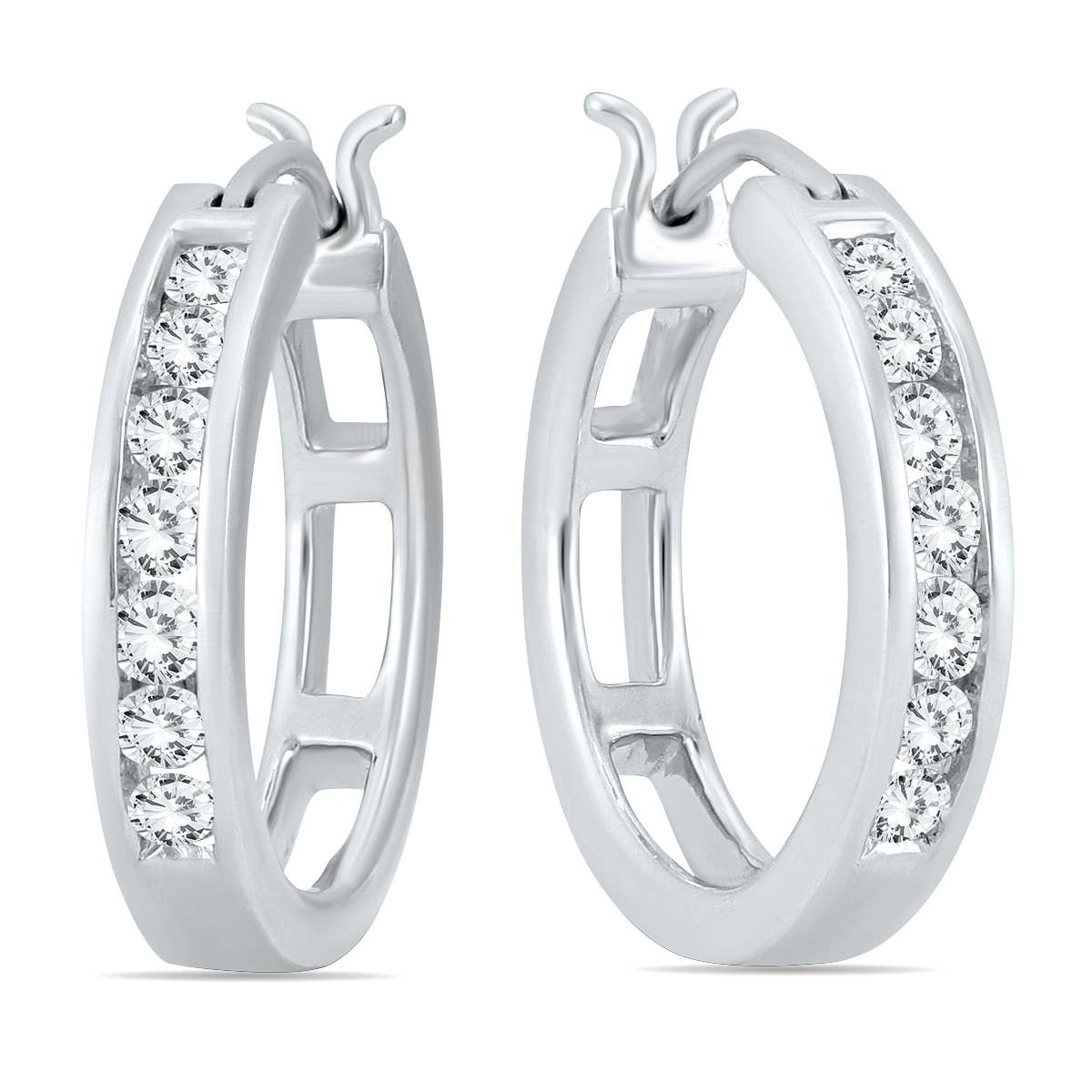 A lovely diamond eternity wedding band crafted in 10K white gold and featuring (94-124) sparkling white diamonds with a minimum total weight of 1/2 carat. The number of diamonds and total diamond weight vary due to ring size with a minimum of 1/2 carat total weight on all rings. An absolutely perfect prong set diamond eternity band great for everyday wear.