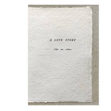 Because no two love stories are ever the same, and each is always an adventure! Part of the Ephemera Edit. A refined minimalism of traditional letterpress on raw cotton handmade papers. Letterpress design on 100% cotton, handmade paper with raw edges. Comes with 100% Post Consumer recycled envelope. A6 standard size | 4.1 x 5.8” size