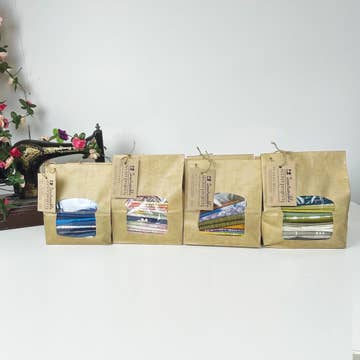 ScrapWiches are scrap packs made from unwanted fabric and sewing supplies collected by our social enterprise. The fabric is sorted by colour and each Scrapwich offer 20 different patterns in each colour. Scrapwiches come in blue, pink, green & brown, black, white, and grey. The fabric scraps are cut to approximately A4 size. The fabric is used by crafters and sewers for a whole host of different projects. This is the perfect gift for the sustainable sewer, or the conscious crafter. The 20 pieces of fabric (mixed material) comes in a sandwich bag made brown paper (100% recycled material) and a compostable film window. Making the packaging 100% recyclable. We are really excited about our Scrapwiches hitting the small boutiques and sewing shops in Summer 2024.