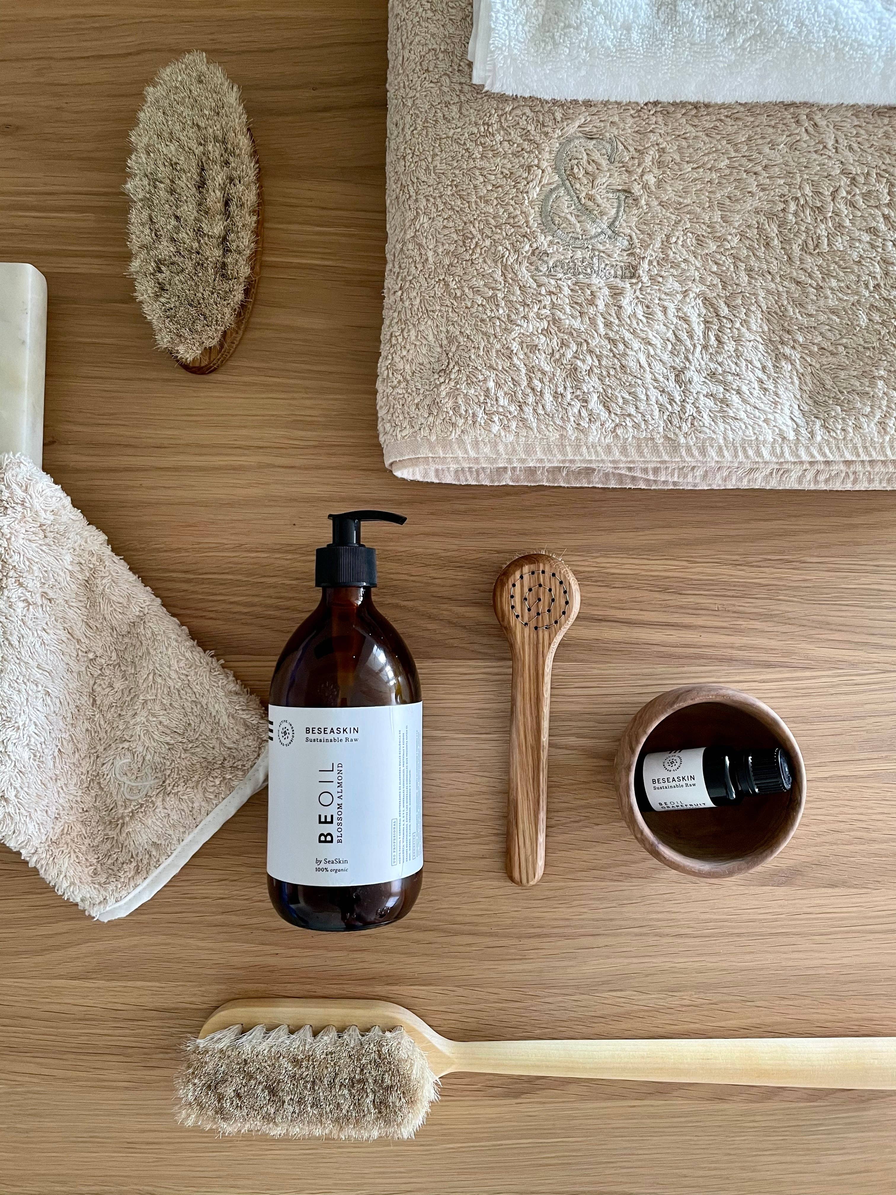 Oak and horsehair facial brush. Use the damp brush with our SeaSkin antiaging organic soap on a clean face. Perform a gentle exfoliation to effectively remove dead cells and give the skin a new glow. Massage your face with circular movements for 5 minutes once or twice a week, avoiding eyes and mouth. The skin will be smoother and the pores cleaner, helping the skin to better absorb the toner and face cream. To clean the brush, pour some water and shampoo into the palm of your hand and carefully circle the brush. When you're done with the shampoo, gradually add more water and continue to circulate until the brush is clean. Gently squeeze it out with a towel, then dry it with a hair dryer while you gently comb it with a comb. Each and every one of the brushes has an exclusive design and is made of natural materials.