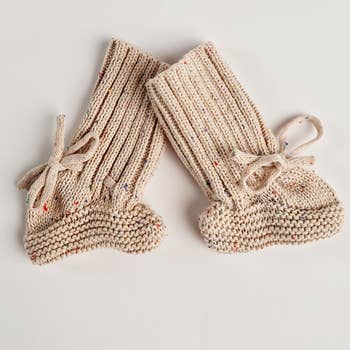 100% organic interlock cotton - GOTS Made from thick organic cotton interlock, our Booties are designed to keep little feet warm and covered from day one. A soft, wide band around the ankle helps them stay on securely — no more missing socks during naps, car rides, or cuddles. An easy addition to your hospital bag or first wardrobe, they pair perfectly with a matching Beanie or Bodysuit for those early weeks at home.