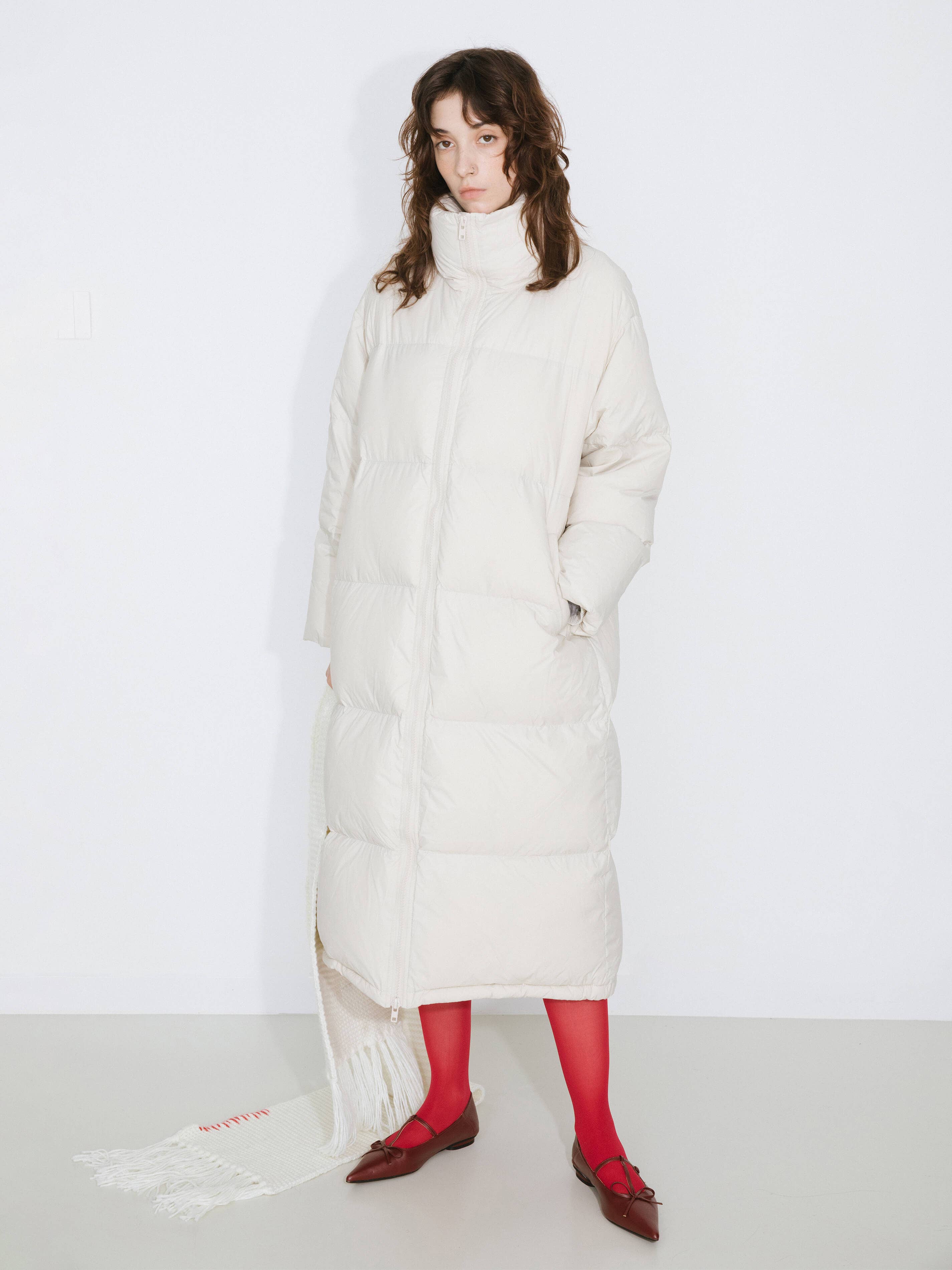 Merino wool knitwear jumper in red/gray/snow/black. Fitted model, turtleneck and seamless wool weaving. Long sleeves. The fabric composition is 100% Wool. Model wears size UN, which is suitable for UK size 8-12. Product Code: COBDK6015
