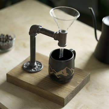 Nothing is stronger than black iron pipes. Nothing compliments iron pipes better than sturdy, thick wood. That combination is what gives this Industrial Coffee Pour-Over System the utilitarian coolness of the industrial era and the minimalistic simplicity of the modern style. Our bold pour over system upgrades the style of any kitchen by using a design that matches the strong, black coffee it makes. This redesign of a classic manual coffee brewing technique brings together a taste and aesthetic that makes coffee a stronger experience. Each pour over is hand-finished with a combination of safe oils and waxes that protect and preserve the wood from any liquids. Dimensions: Width: 10 inches Height: 7 inches Depth: 7 inches Proudly built by hand in Portland, OR by The Iron Roots Designs