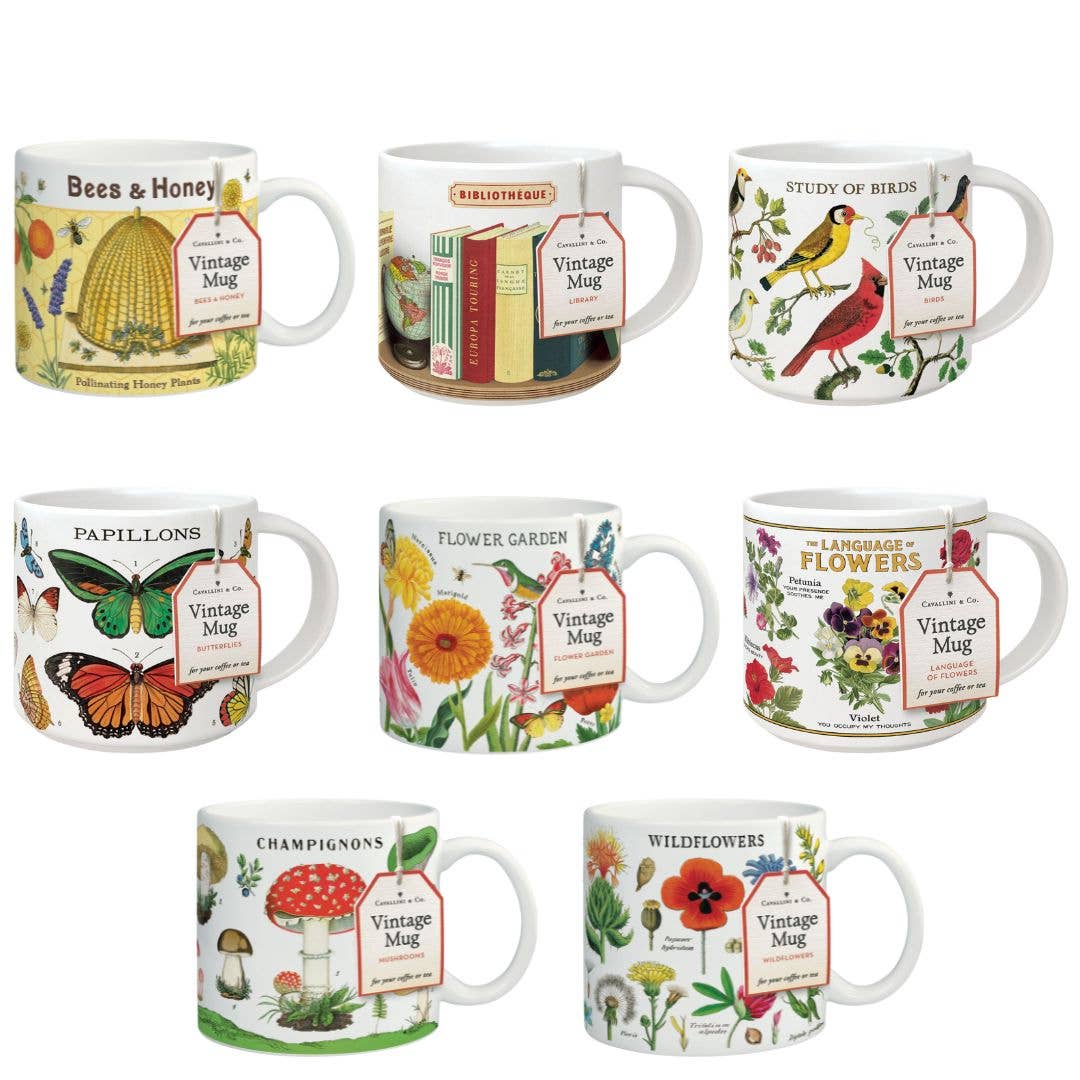 Vintage Mug - Flower Garden 14fl oz - perfect for your coffee or tea Microwave and dishwasher safe Vintage imagery from the Cavallini archives Packaged in a beautiful gift box! 14x19.5cm