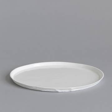 Hand cast ceramic plate with a subtle irregular shape. 25 x 15 x 1.5cm