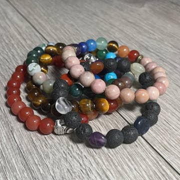 These 8mm gemstone chakra bracelets are crafted with vibrant stones aligned with the seven chakras. Designed to support energy balance and spiritual wellness, each stretch bracelet includes a full spectrum of healing crystals, making them popular with metaphysical shops, yoga studios, and holistic wellness retailers. Sold wholesale, these gemstone bracelets are ideal for resale or as part of a curated spiritual product collection. The bracelets are on stretchy string for comfort and wearability, suitable for both men and women. Sold individually with a minimum of 2 per style.