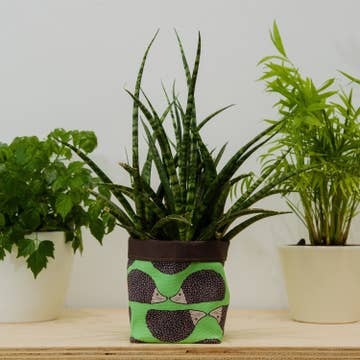 Brighten up your home with a new plant pot. Our puffin print textile planters are perfect for adding a splash of colour and to hide those ugly plastic pots! Our plant post are perfect for house plants, succulents and cacti or herbs on the kitchen window. Each pot is made from digitally printed cotton and lined with a waterproof fabric, perfect for catching stray drips. These pots are the perfect accessory to add a pop of colour to your home, too gift to a plant fan or as a lovely housewarming gift! Plant pots have a square base and measure approximately 10cm square. The height of each pot (without the turnover) is approximately 14cm and with the turnover is approximately 12cm. Please note the print placement may vary slightly as each plant pot lining is cut from a different part of the fabric and the fabric. ... How to use with cacti and succulents: -Pop your cactus or succulent (in the plastic plant pot) into our custom printed textile plant pots -when it's time to water (every 3-4 weeks) take the cactus or succulent out of the textile planter, water it and leave it to drain on the draining board -when the excess water has drained off pop the cactus or succulent back in the pot. How to use with plants needing water every few days: -either follow the steps above or use a small plastic tray or dish in the bottom of the fabric plant pot and water your plant while it is in the planter. Please note - the waterproof lining is designed to catch small drips. It is not designed for lots of water so it is recommended that your leave your plant to drain or use a small dish and try and avoid over watering. Washing instructions: If you need to clean your plant pot - dry clean only and iron on a medium heat.