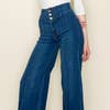 Wholesale PW508 -M Front Seam Wide Leg Denim Jeans in Medium Wash