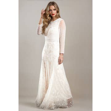 Step into the night in this Jywal London modest wedding gown. Featuring all over embellishment with sequins and beads which catch the light beautifully. The flattering flare and fit to the dress will make you look and feel amazing on that special occasion along with the shaped neckline and long sleeve design. S Length 155 cm Bust 80 cm Waist 72 cm 4US 8UK M Length 155 cm Bust 84 cm Waist 76 cm 6US 10UK L Length 155 cm Bust 88 cm Waist 80 cm 8US 12UK XL Length 155 cm Bust 92 cm Waist 84 cm 10US 14UK 2XL Length 155 cm Bust 96 cm Waist 88 cm 12US 16UK 3XL Length 155 cm Bust 100 cm Waist 92 cm 14US 18UK