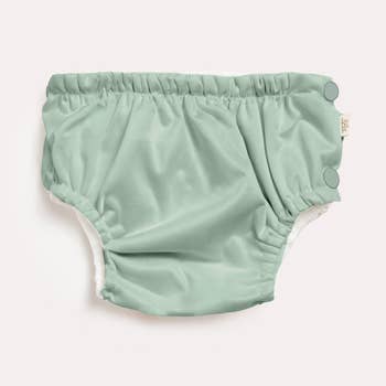 Now made from recycled plastics! ♻️ Ideal for swimming lessons and summer holidays! This swim nappy fits all babies from 3 months to 3 years old. Fully adjustable with front snaps to make it smaller and a soft VELCRO waist to give an exact waist measurement. Eco-friendly, no other disposable swim nappy needed. Features: For baby and toddler One size fits all from 3 months to 3 years old (15kgs). Double inner leg gusset; leak and accident proof Snug fitting soft elastic seams No gaps, exact waistband fit with soft VELCRO tabs Quick dry fabric Fully lined lightweight fabric won’t weigh down or absorb water Complete containment of solids, no other disposable swim nappy needed Easy care, rinse after use, dry in shade Machine washable for a deeper clean Materials: outer: 100% Recycled Polyurethane laminate Inner: 100% recycled polyester