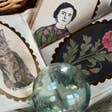 A beautiful oval card with golden scallop edging. A floral wreath design adorns this card, featuring festive berries and a purple hellebore. The gold foil text in the centre of the card reads 'Merry Christmas and a Happy New Year'. Paired with a complementary blush pink envelope. Packed with care from our Hove studio and printed in the UK on FSC certified papers. SKU WAN 6001