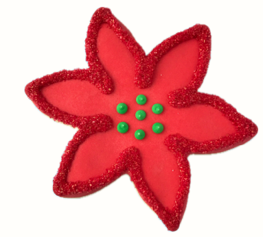 The white Christmas tree with green swirls cookie comes individually bagged and tied with a bow. Approximately 4-5 inches in size.