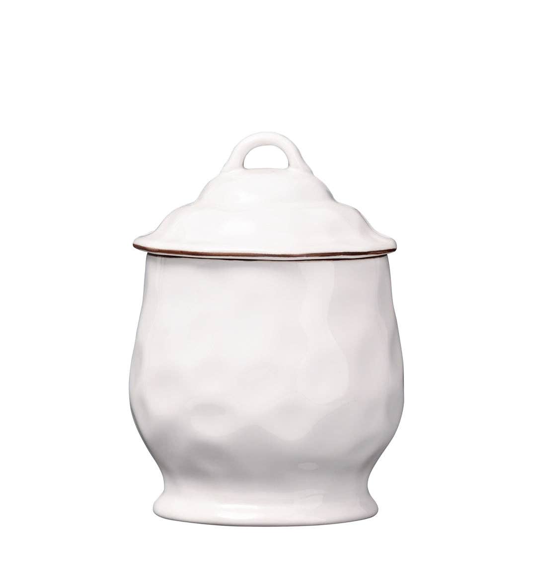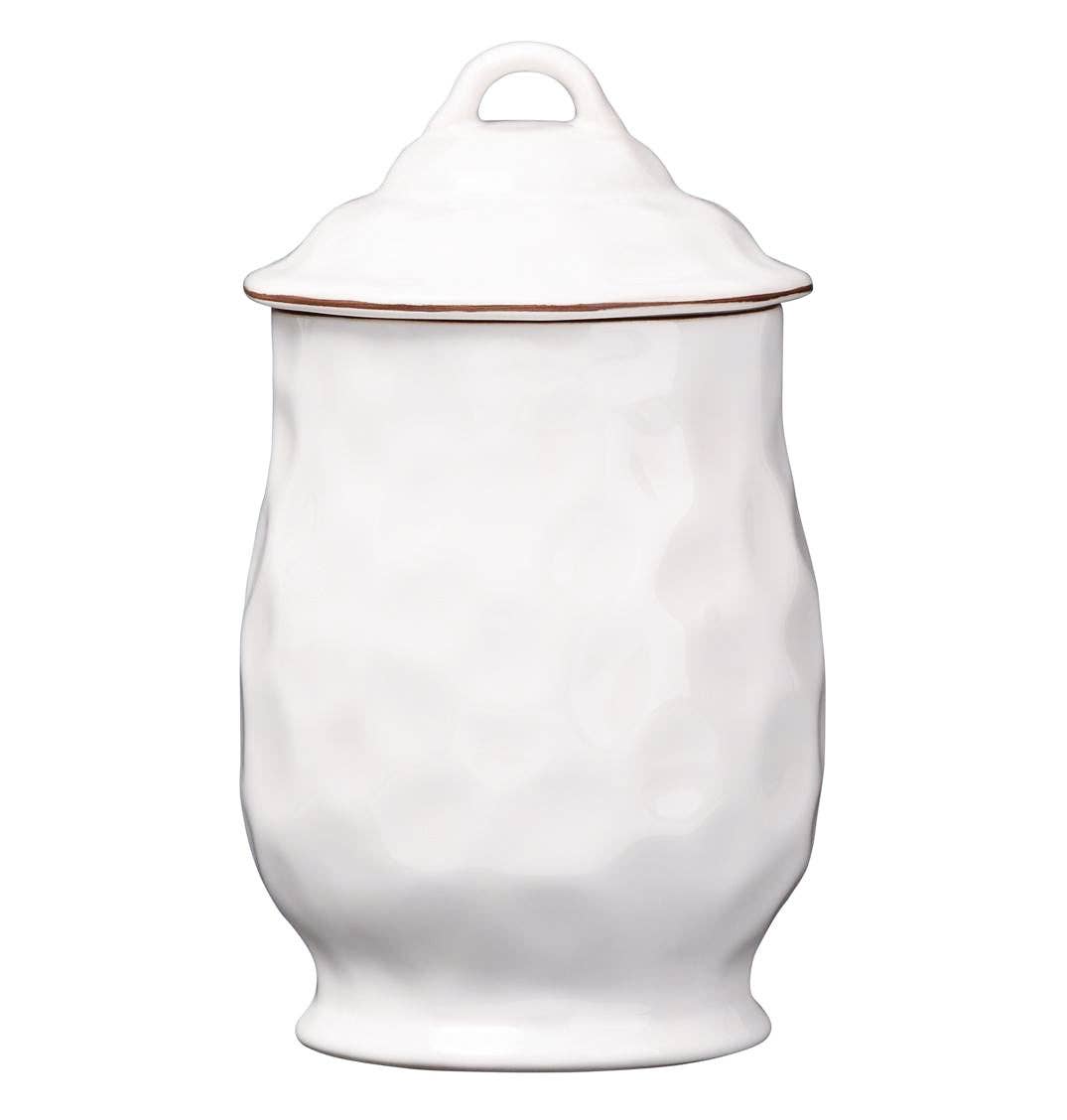 The organic shapes and hammered texture are what makes Cantaria so special, and this trio of canisters will bring a beautiful addition of color to your kitchen. You will love storing cookies, pasta, flour or sugar in these sealed canisters. Handcrafted in Portugal of ceramic stoneware. Freezer, oven, microwave and dishwasher safe.