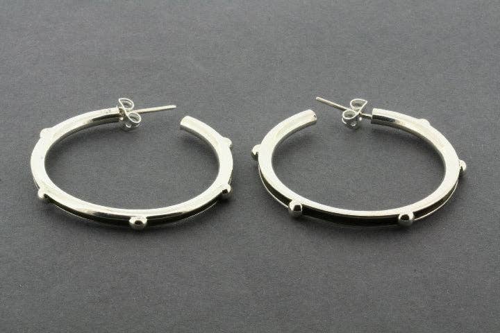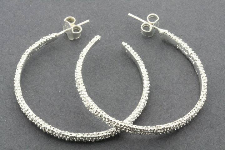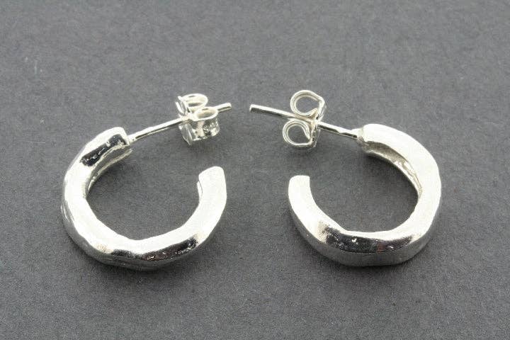Hand crafted from sterling silver and copper with a subtle hammered treatment. These gorgeous earring hoops are designed in Australia by Makers & Providers and ethically made by skilled artisans in Mexico. Approximate length: 33mm Approximate width: 24mm Approximate depth: 10mm