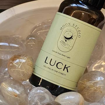 Description: Elevate your surroundings with our Luck Spray, a potent blend handcrafted in Sydney, Australia, and infused with the uplifting energy of citrine. Made with pure Australian mineral water and scented with the enchanting fragrance of "Oolong in the Forest," this spray is a delightful addition to enhance positive vibes and invite good fortune into your space. Spray Highlights: Citrine Infusion: Harness the positive energy of citrine, known for promoting luck and abundance. Hand Poured: Meticulously crafted in Sydney, ensuring quality and attention to detail. Australian Mineral Water: Experience the purity of Australian mineral water in every spritz. Oolong in the Forest Scent: Immerse yourself in the earthy and soothing fragrance, enhancing the atmosphere with luck and positivity. Contains: * Guaiac wood oil from Paraguay * Patchouli oil from Indonesia * Vetiver oil from Haiti * Cardamom oil from India * Pepper oil from China * Petitgrain oil from Paraguay * Orange oil * Clary sage oil * Cinnamon oil * Ginger oil * Ylang ylang oil Features: Ideal for daily use to set positive intentions, uplift energy, or as a thoughtful gift for luck seekers. 50ml size for convenient use at home, work, or on the go. Securely packaged to ensure safe delivery. Spritz your way to good fortune with our Luck Spray, carefully curated to infuse your space with positive energy and the inviting aroma of Oolong in the Forest. Please Note: Shake well before use to activate the infused energy. Store in a cool, dry place away from direct sunlight.