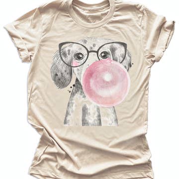 Bring a smile to your style with this sublimation shirt featuring a 'Bubblegum Dog'. A playful and endearing design that captures the joy and lightheartedness of our furry friends, perfect for dog lovers and those who adore playful charm. Brands offered for each color: Sand, Beige- Bella & Canvas Heather Gray Par-tees (tees made in Honduras that work excellent with our printing method. Fonts & colors will be as shown, but actual colors can vary slightly from monitor colors. Indulge in unmatched comfort and style with our Sublimation Soft Print Tees. Crafted with precision and care, these shirts boast a sublimation printing technique that guarantees a soft-to-the-touch feel, ensuring a luxurious and cozy experience. Our soft print designs can have a slightly heathered look due to the nature of direct-to-fabric printing on color shirts and designs may not be a solid color. Shirts are custom-made to order in-house!
