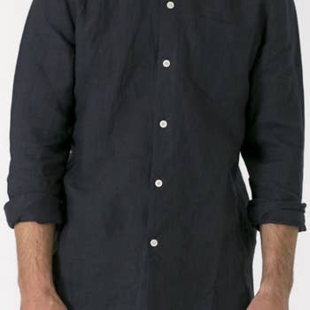Cotton Natural Mandarin collar, long sleeve button down shirt. Available in White, Light Blue, and Dark Blue. Made from the finest Peruvian Pima Cotton. Soft and comfortable, breathable relaxed fit.