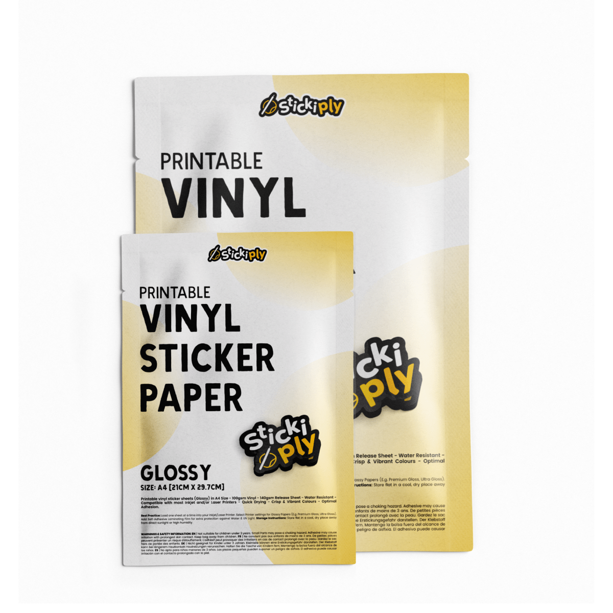 Self-Adhesive UV Protective Gloss Laminating Sheets – a professional-grade, high-quality solution to protect and enhance your stickers, prints, photos, and bookmarks without a heat laminator. These gloss finish sheets feature a clear, slightly textured surface for reduced reflection and a smooth professional look. Perfect for crafts, business packaging, and archival uses. Features: * Slightly textured gloss finish with reduced glare * 70 Micron (2.7 Mil) thickness * Sizes: A4 / US Letter (Approx. 30 × 22 cm) and A3 (Approx. 30 × 42 cm) * Clear film with permanent acrylic adhesive on peel-away backing * Easy application by hand, cold laminator, or roller * Water-resistant, scratch protection, soft-touch feel * UV-protected for indoor and limited outdoor use Instructions for Use: * By Hand: Peel back a small section of backing. Align and stick the top edge to your media. Slowly pull away backing while pressing down with a squeegee or ruler to smooth out bubbles. * By Cold Laminator: Set machine to cold. Stick top edge of laminate to media. Feed through rollers while removing backing for an even, smooth finish. Pro Tip: Applying consistent, firm pressure ensures a cleaner gloss finish. Use a soft squeegee or roller to avoid scratching the surface.