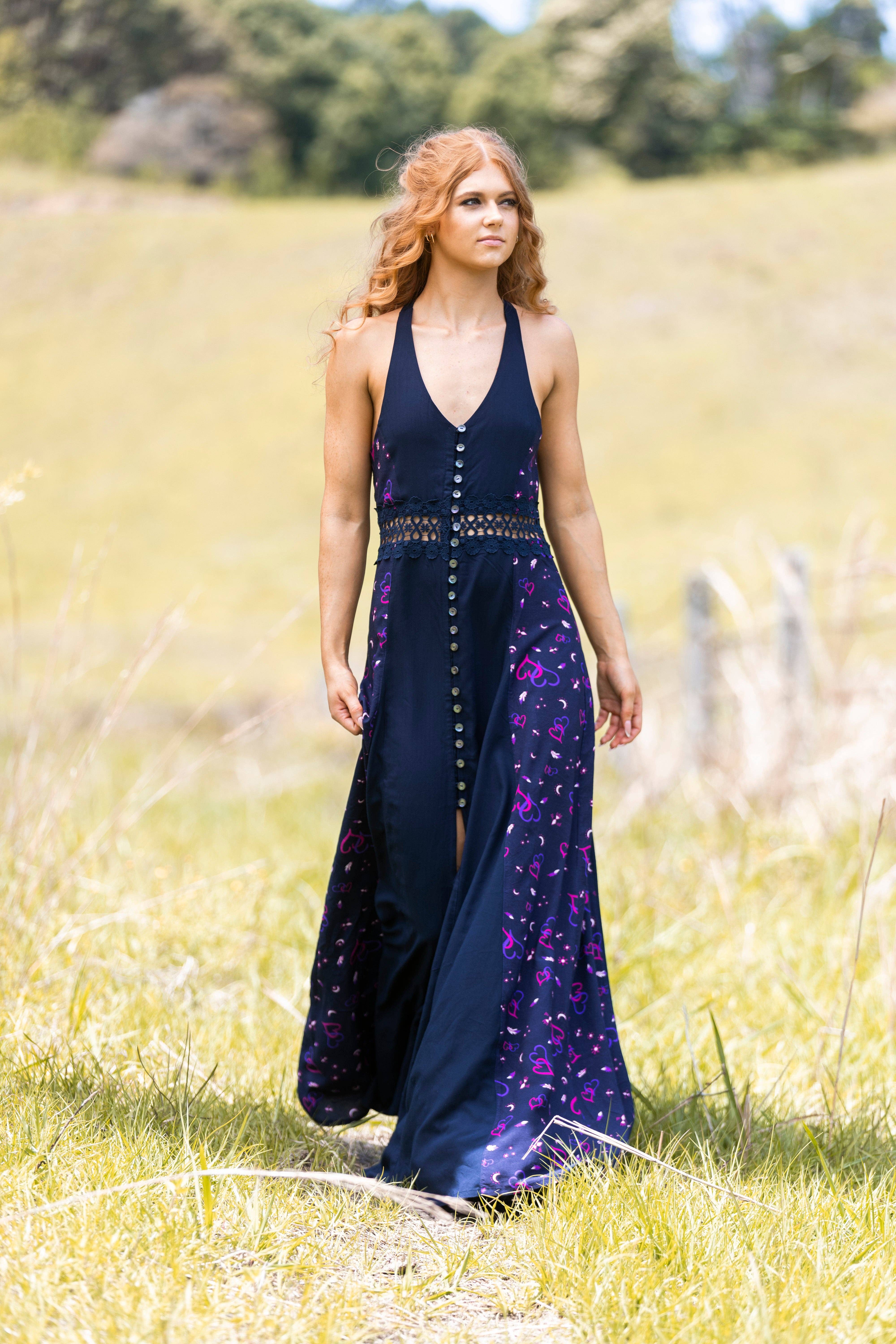 Printed Maxi Dress - Navy