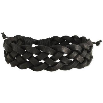 Hang Tough Braided Black Leather Men's Bracelet
